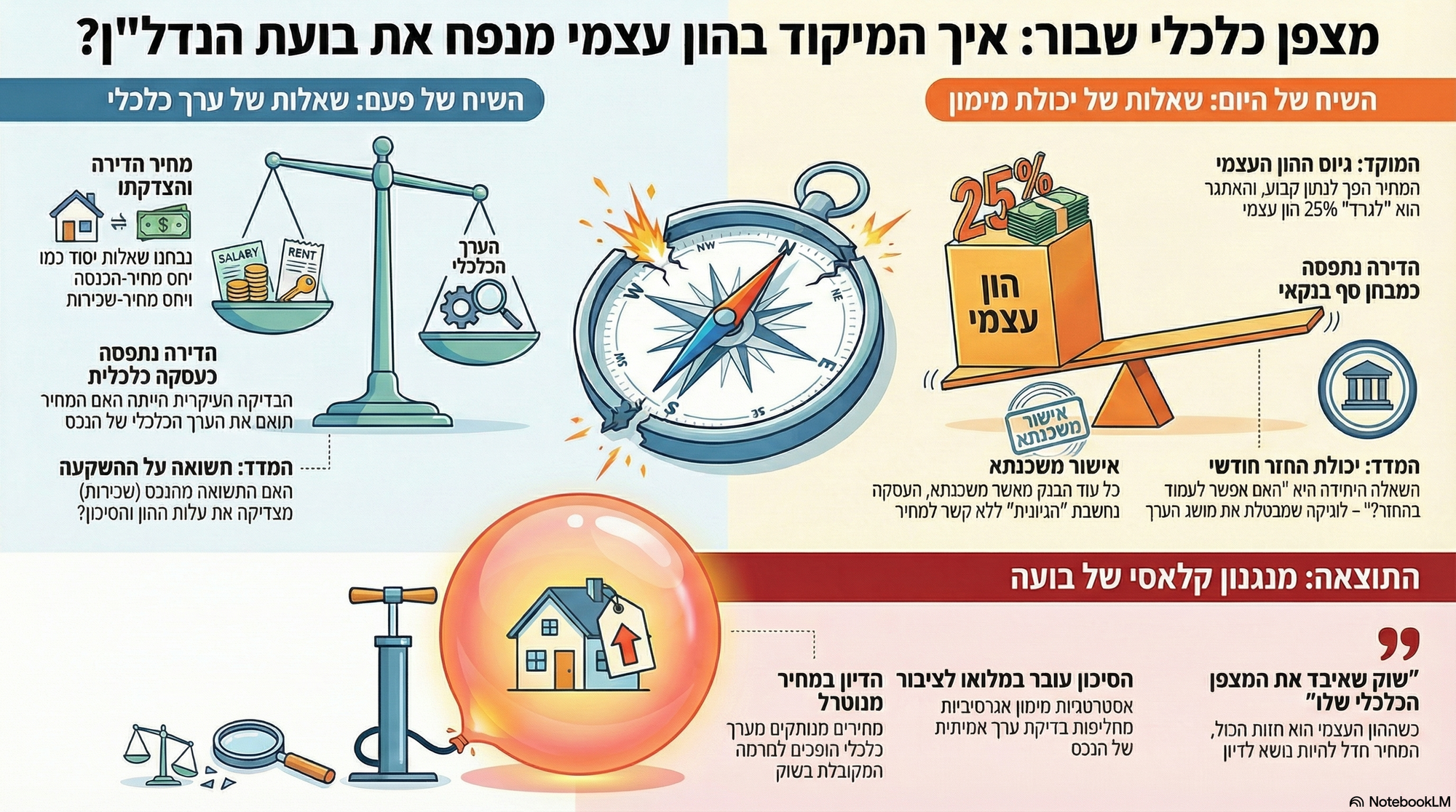- הציבור, שהאמין שמחירי הדירות יציבים או עולים עלול למצוא עצמו בעסקאות שבנויות על “שווי פיקטיבי + מינוף גבוה + חוסר שקיפות”.
