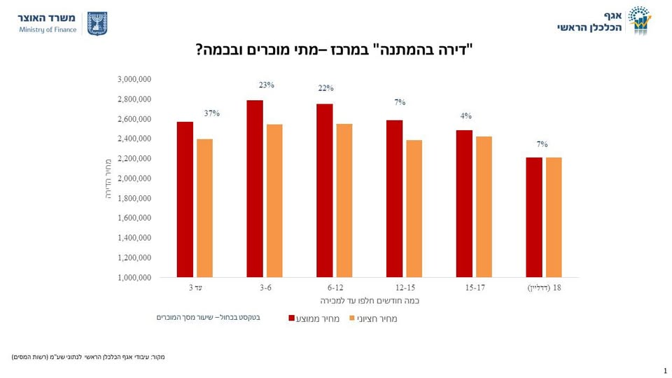 ניתוח מקצועי לגרף שפרסמה גלית בן נאים מאגף הכלכלן הראשי על רוכשי “דירה בהמתנה” באזור המרכז. המאמר מסביר מדוע מכירה מהירה מדי עלולה לגרום להנחה, מדוע חלון 3 עד 12 חודשים נראה כחלון המכירה האופטימלי, ומדוע גרירת רגליים עד הדד־ליין המיסויי עלולה להוביל לפגיעה חדה במחיר. כולל הבחנה בין מחיר ממוצע למחיר חציוני, טבלת הפסדים באחוזים, והסתייגות מקצועית חשובה: הגרף מציג קשר מובהק בין זמן המכירה למחיר, אך אינו מוכיח סיבתיות מלאה ללא נטרול מאפייני הנכס והמוכר.