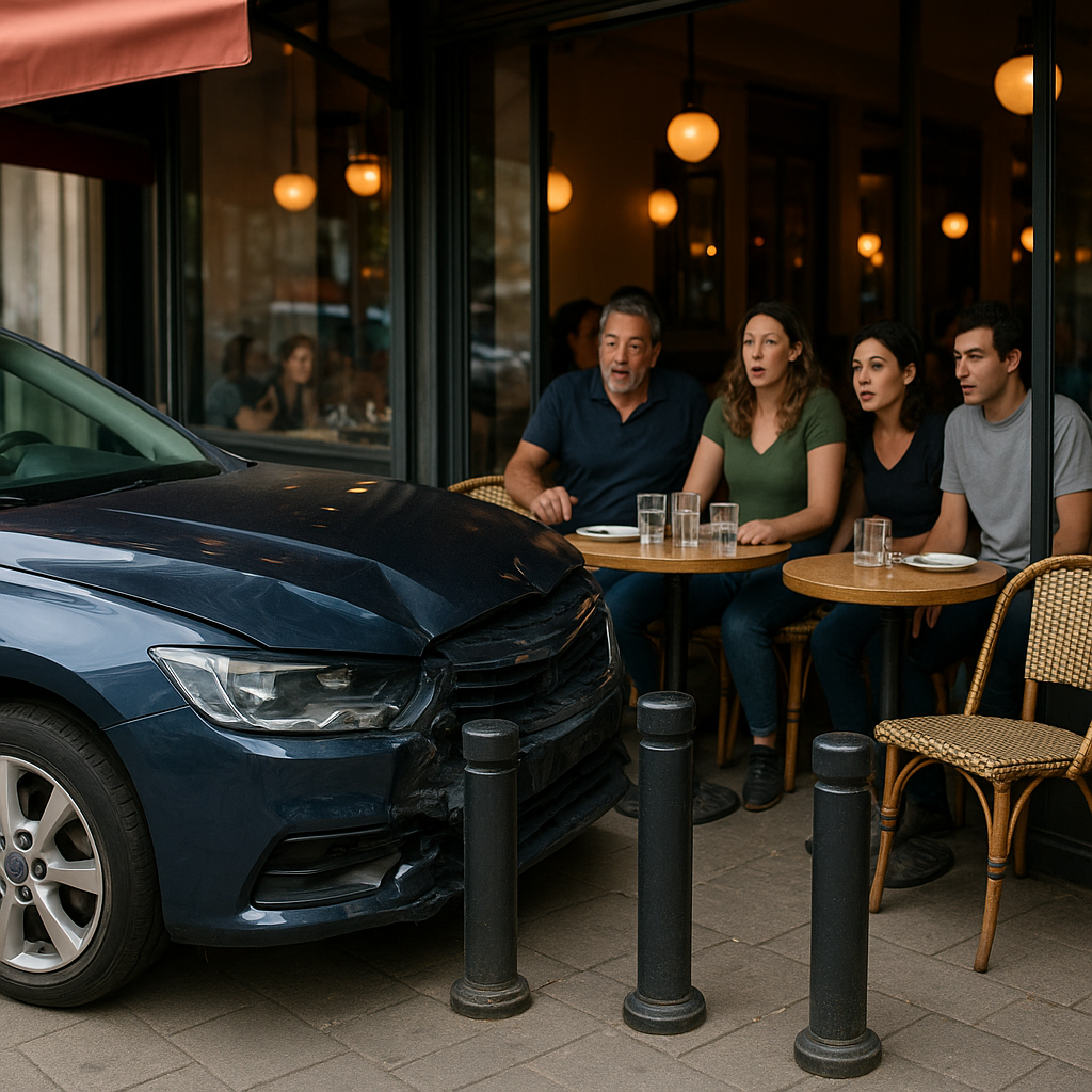 בוקר שגרתי בכפר סבא הסתיים באסון, כאשר רכב פרץ לתוך בית קפה בקומת הקרקע ופצע אנושות גבר בן 30. למרבה המזל לא היה מדובר בפיגוע, אלא בתאונת דרכים – אך התוצאה זהה: חיי אדם בסכנה מיידית.אירוע זה הוא לא “תאונה חריגה” אלא המחשה בוטה של בעיה תכנונית מובהקת: מסעדות ובתי קפה הפונים ישירות למדרכה, ללא כל אמצעי מיגון מפני כלי רכב סוטים.