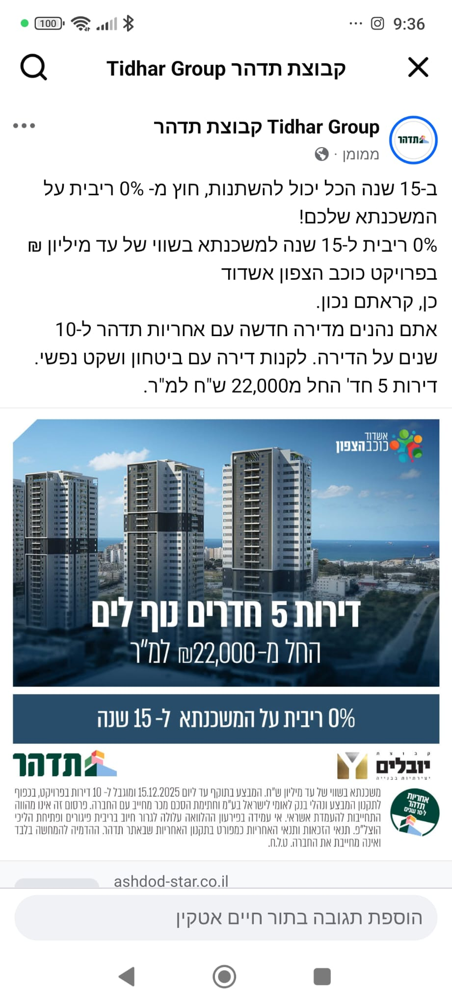 המשמעות הכספית של ההטבה היא משמעותית מאוד – מדובר בחיסכון של עד מאות אלפי שקלים לאורך 15 שנים, בהתאם לגובה המשכנתא שתקבל בתנאים של 0% ריבית עד מיליון ₪ בפרויקט כוכב הצפון אשדוד.yad2+3