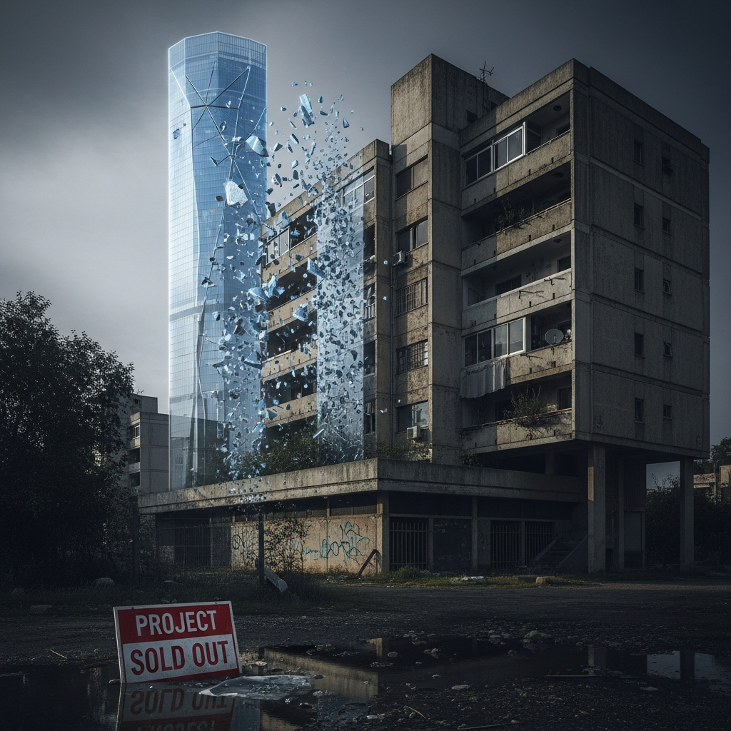 ברגע שהזרם נעצר – ונתוני יוני 2025 מראים צניחה של 50% במכירות – החמצן נחתך. ללא "פראיירים חדשים" שיממנו את ההבטחות הישנות, המודל פשוט קורס. זהו פונזי נדל"ני לכל דבר: כסף חדש מממן הבטחות קודמות, עד שהקופה מתרוקנת.