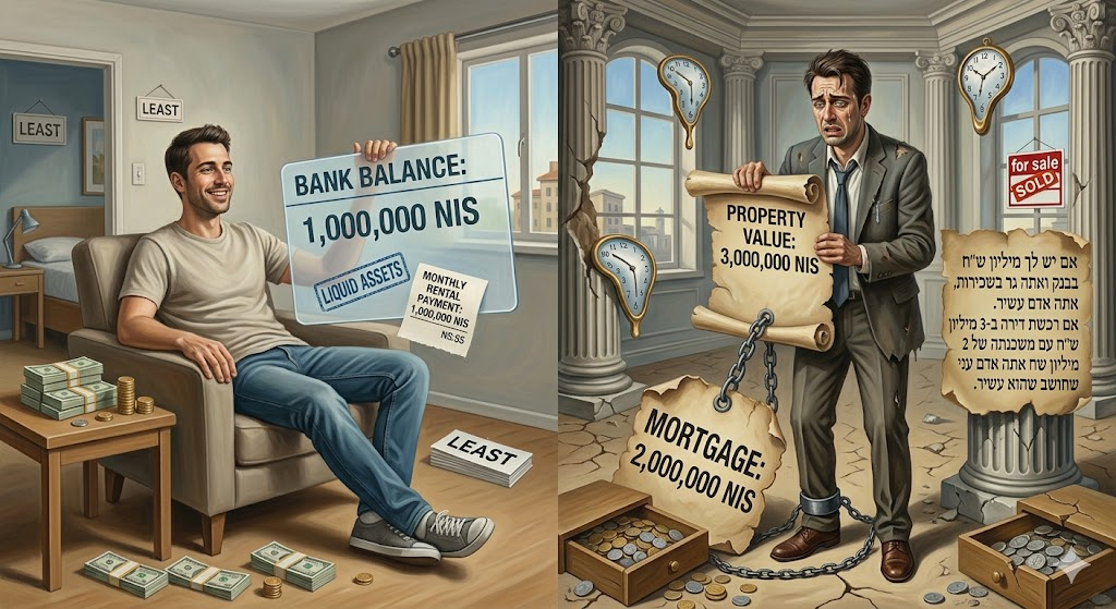 אם יש לך מיליון ש"ח בבנק ואתה גר בשכירות, ייתכן שאתה אדם עשיר. אם רכשת דירה ב־3 מיליון ש"ח עם משכנתה של 2 מיליון ש"ח, ייתכן שאתה אדם עני שחושב שהוא עשיר. זה איננו רק משחק מילים.